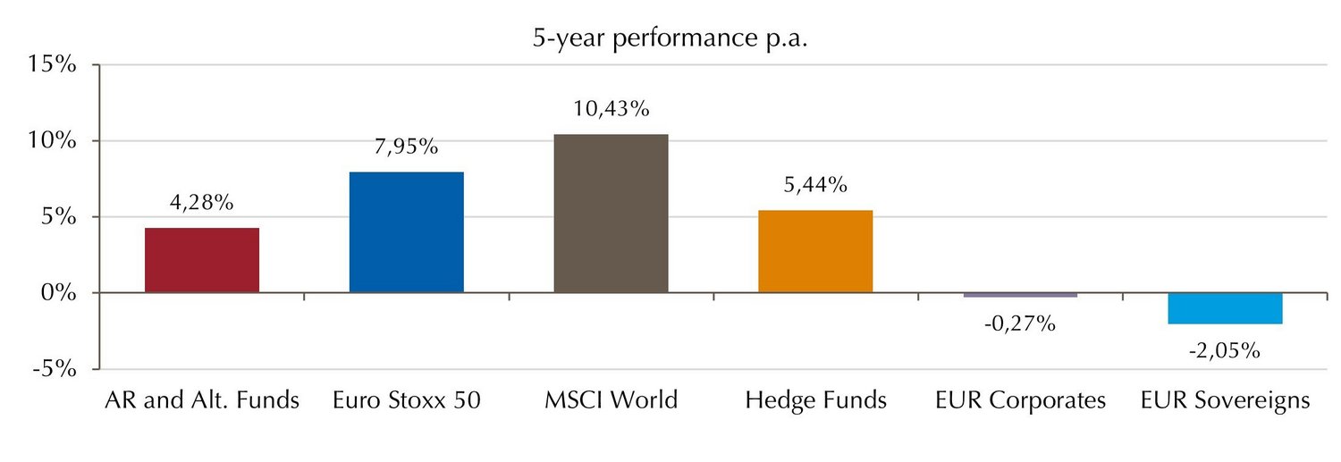 Over three and five years, the asset class continues to underline its diversifying properties, while bonds continue to suffer from the price losses of previous years.